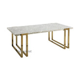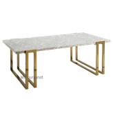 رویه میز جلومبلی لیسبون میتواند از شیشه ۸ میلیمتری یا هایگلاس مشکی و سفید با طرح سنگ باشد. هر دو گزینه نه تنها ظاهری شیک و مدرن دارند، بلکه از لحاظ کارایی نیز بسیار مقاوم و آسان در تمیز کردن هستند.