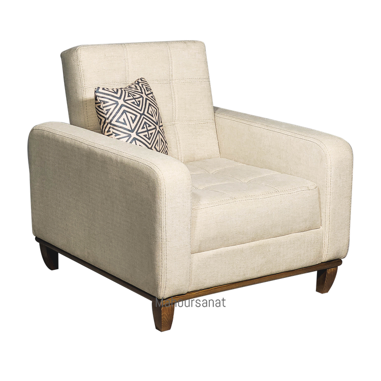 ساخته شده از فوم سرد با کیفیت، این مبل تضمین کننده راحتی و دوام طولانی مدت است. پارچه مقاوم استفاده شده در این مبل، علاوه بر زیبایی، مقاومت بالایی در برابر سایش و پارگی دارد. پایههای مستحکم از چوب راش و چوب روس، نه تنها پایداری و استحکام بالایی را فراهم میکنند، بلکه به زیبایی و جذابیت بصری این مبل نیز میافزایند.